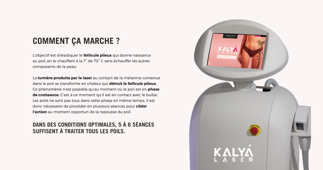 Être partenaire Kalya, c’est vous assurer la qualité de solutions de dernière génération, développées par les départements R&D de spécialistes de l’épilation et du matériel esthétique. C’est pouvoir compter sur la fiabilité de vos équipements autant que sur un accompagnement de proximité, au quotidien.