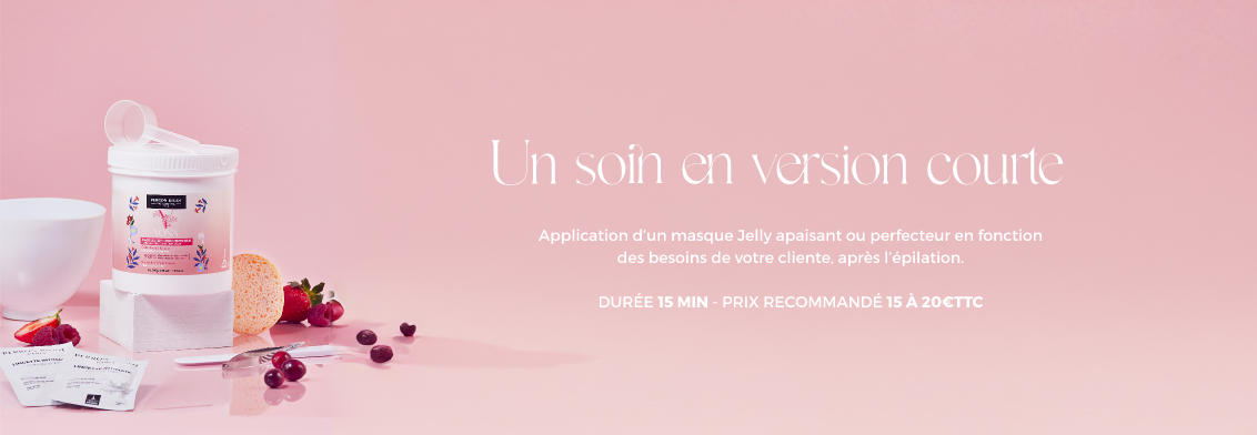 Application d’un masque Jelly apaisant ou perfecteur en fonction des besoins de votre cliente, après l’épilation.